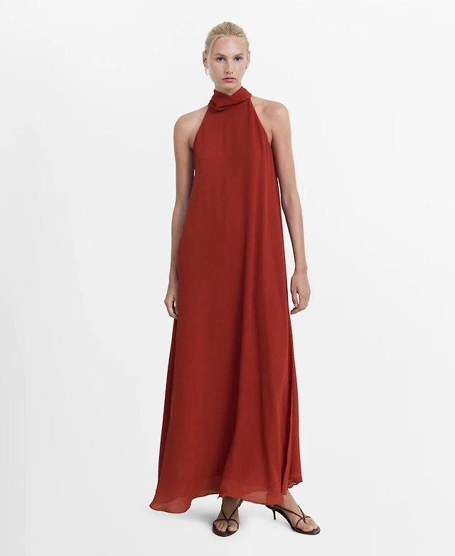 Mango Women's Draped Collar Embroidered Dress