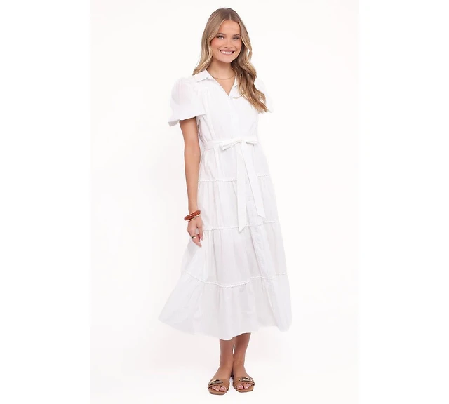 kensie Women's Embroidered Tie-Waist Midi Dress