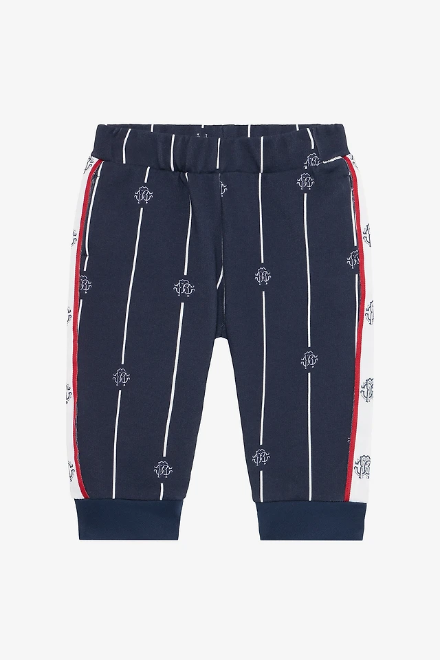 Blue Track Pants with RC Monogram and Stripes