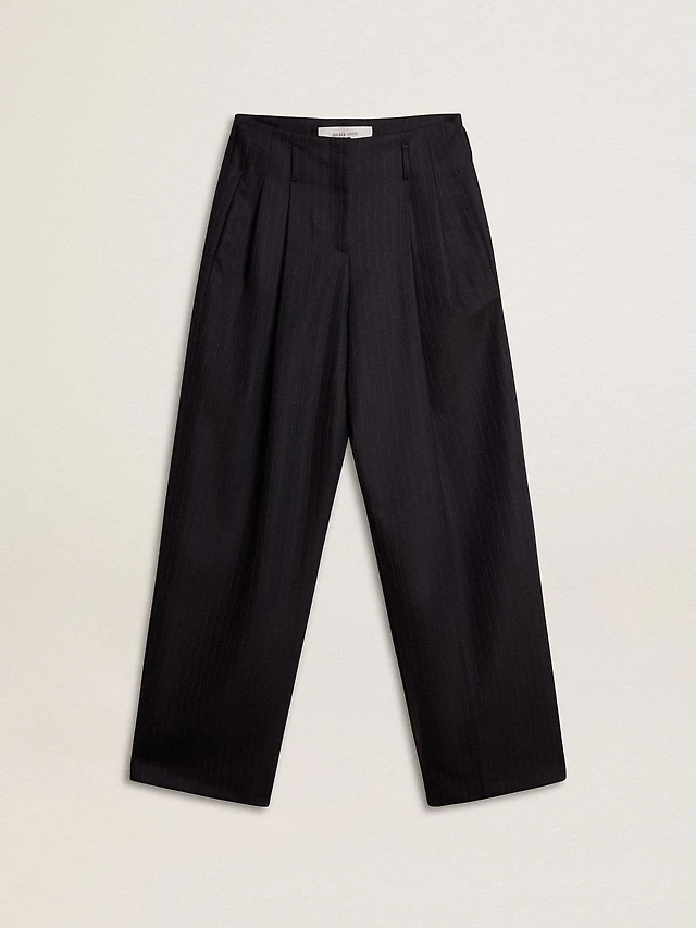 Women’s dark blue tailored trousers with vertical stripe
