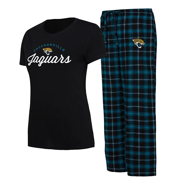 Women's Concepts Sport Black/Teal Jacksonville Jaguars Arctic Top & Flannel Pants Sleep Set