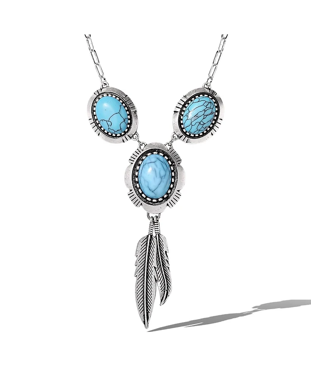 Jessica Simpson Turquoise & Feather Pendant Necklace in Antique Silver
