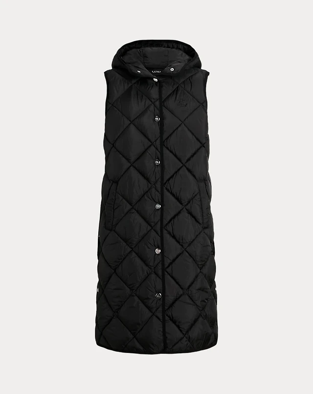 Diamond-Quilted Hooded Vest