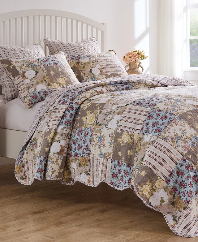 Laura Ashley Bramble Floral Cotton 3-Pc. Quilt Set
