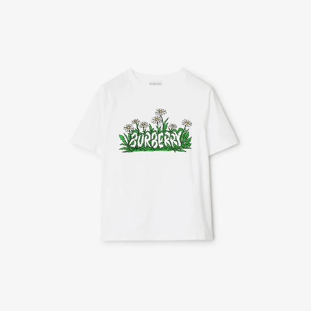 EKD Check Cotton T-shirt in Chalk white - Women | Burberry® Official