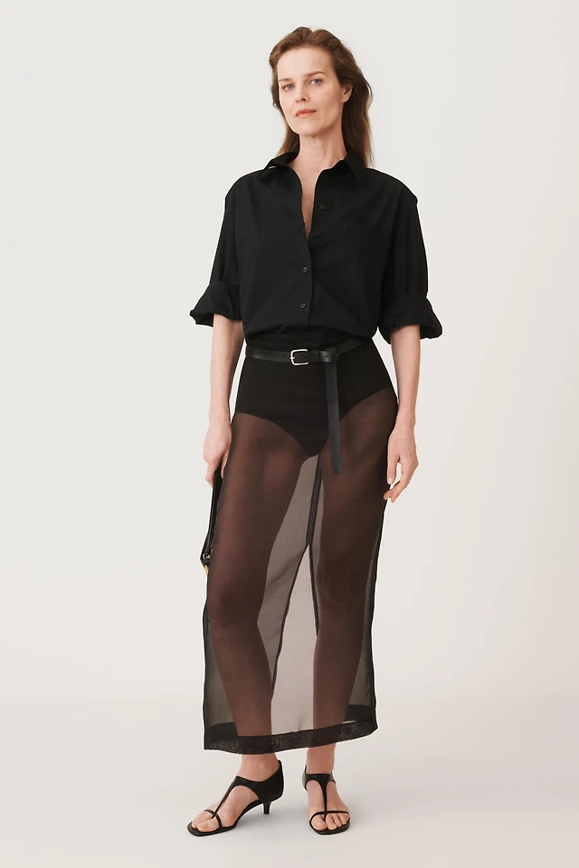 Silk Charmeuse Relaxed Button-Down Shirt