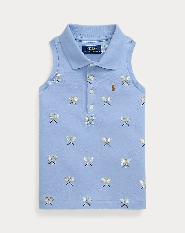 Tennis-Print Mesh Sleeveless Polo Shirt