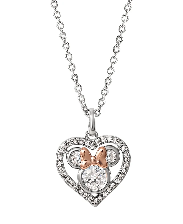 Disney Womens Minnie Mouse Silver Plated Cubic Zirconia Necklace, 16+2"