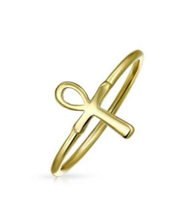 Bling Jewelry Minimalist Silver Ring with Egyptian Ankh Cross 14K Gold Plated Sterling Band