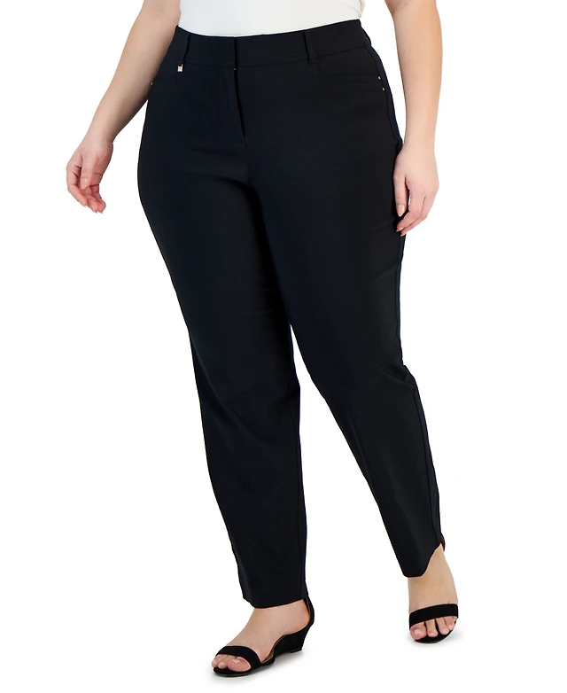 Jm Collection Plus & Petite Tummy Control Pull-On Slim-Leg Pants