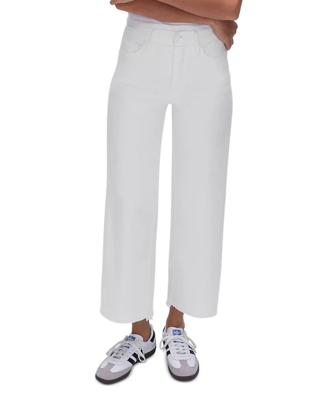 High Waisted Medium Wash Raw Hem Wide Leg Ankle Jeans