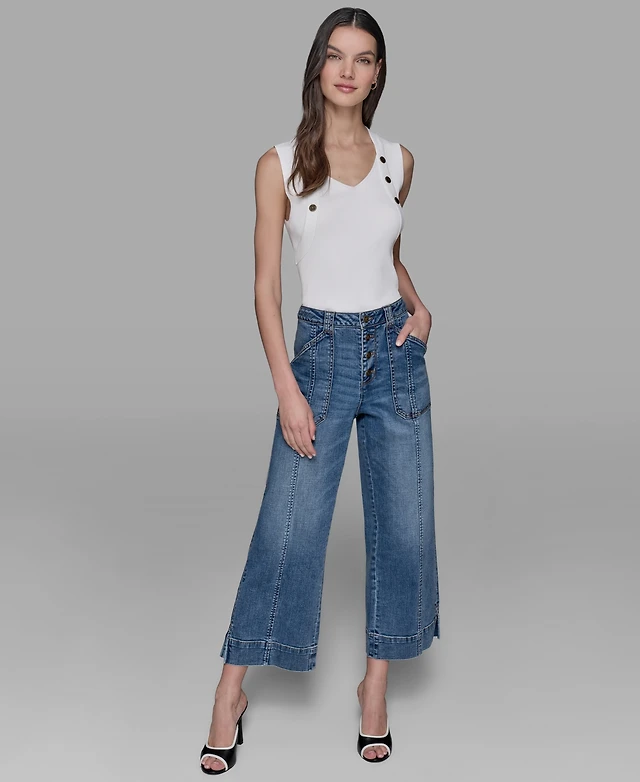 Dkny Jeans Petite Embellished Trim Sweater Top
