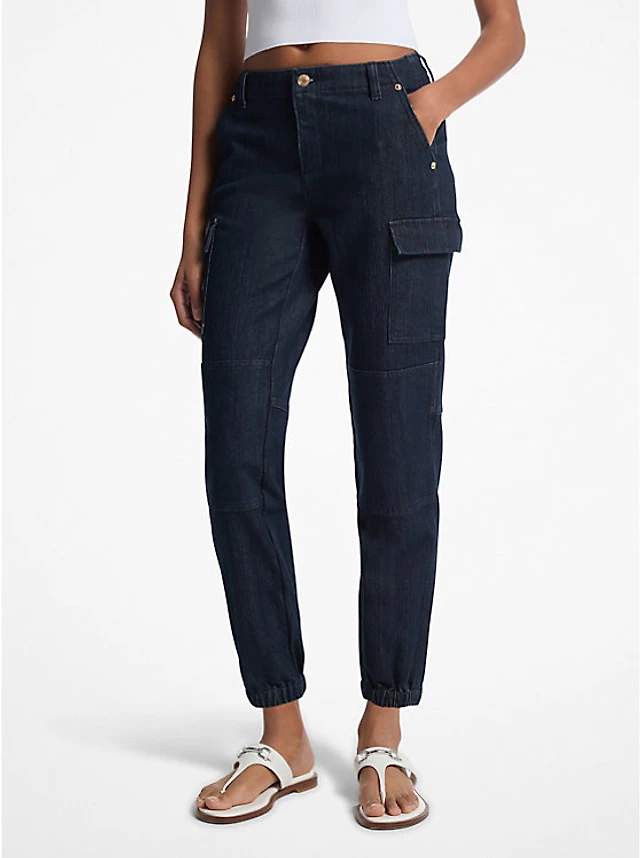 Washed Stretch Denim Cargo Jeans