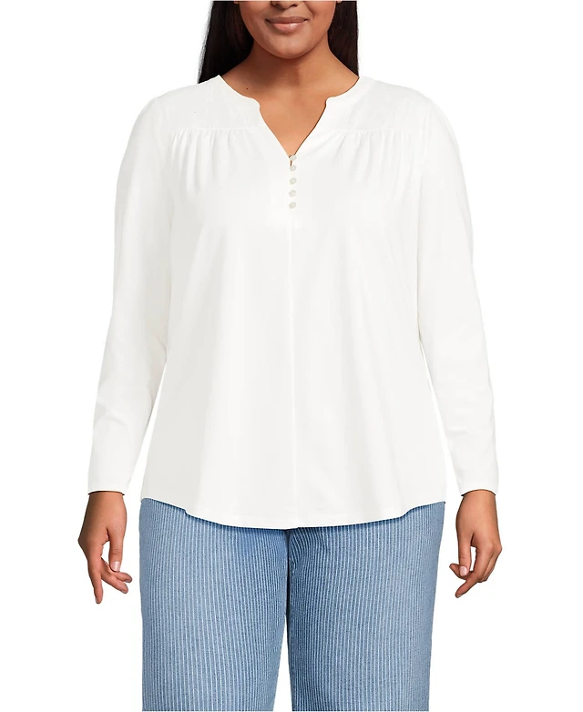 Lands' End Women's Plus Long Sleeve Lightweight Jersey Notch Neck Tunic Top