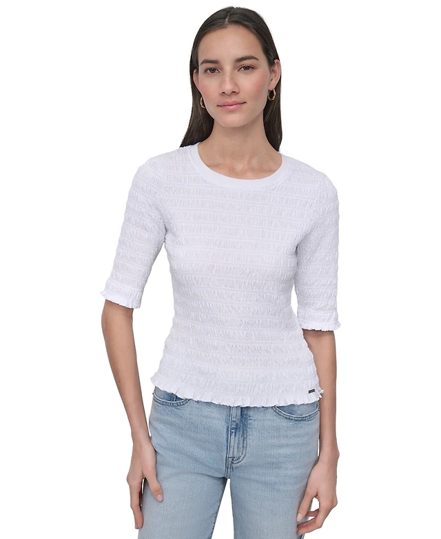 Lace Patterned Open Stitch Short Sleeve Shirt