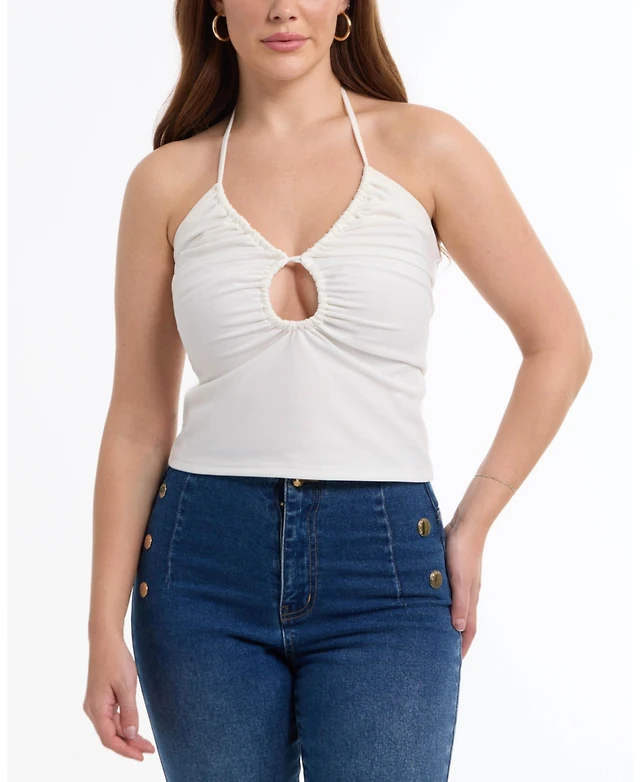 White Mark Women's Cold Shoulder Lace Trim Knit Top
