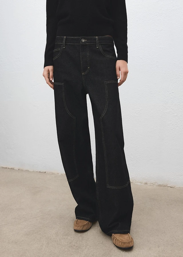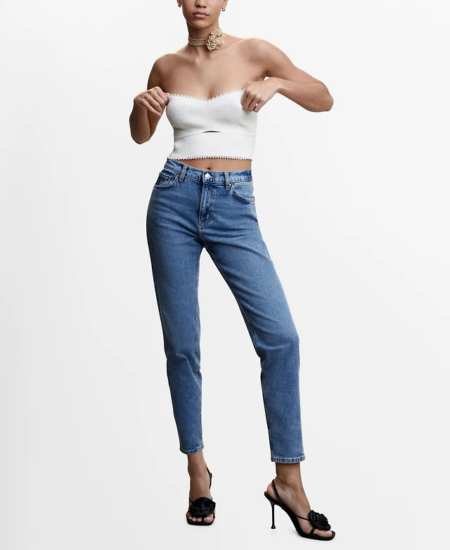 Mango Women's Turn-Up Hem Wide-Leg Jeans