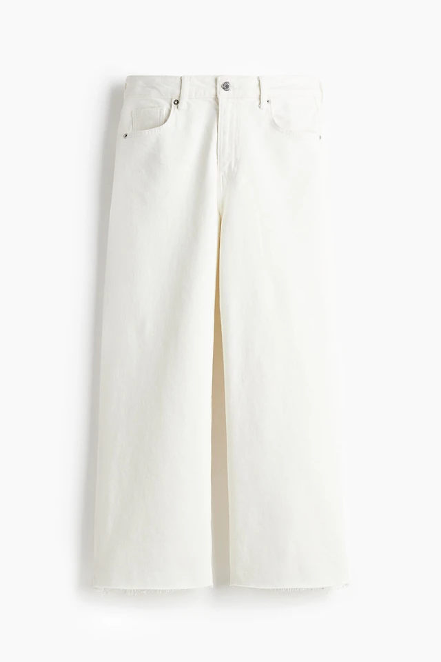 High Waisted Light Wash Raw Hem 50/50 Rigid Stretch Wide Leg Jeans