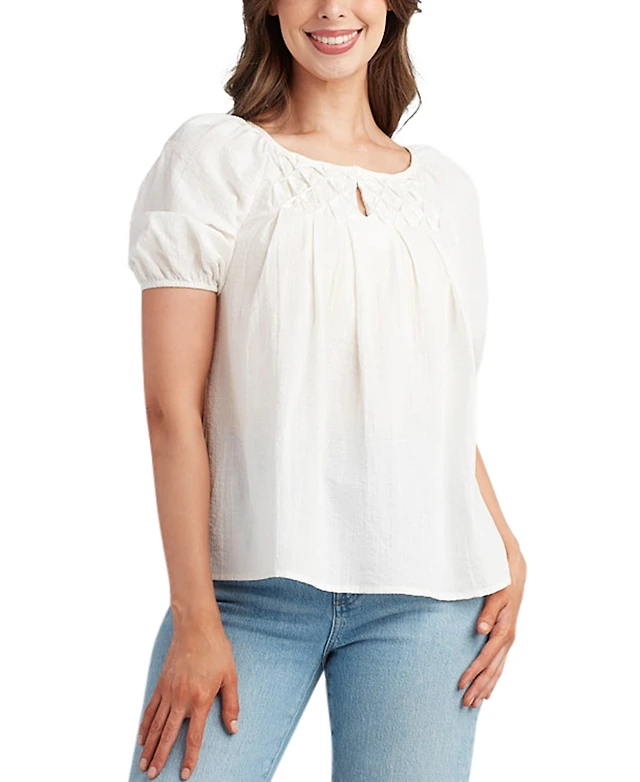 Jones New York Women's Kelly Printed Sheer-Sleeve Pleated Blouse