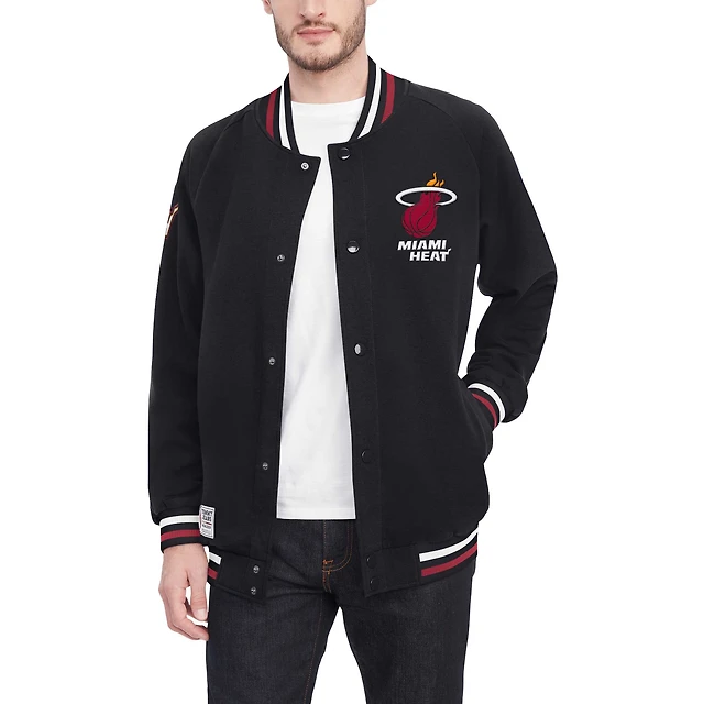 Men's Tommy Jeans Black Miami Heat Dane Raglan Full-Snap Varsity Jacket