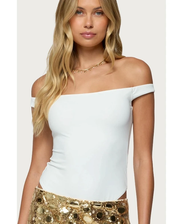 Mac Duggal Women's Mesh Long Sleeve Bodysuit With Satin Puff Sleeves