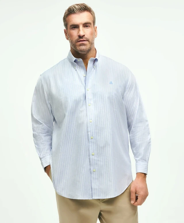 Big & Tall Stretch Cotton Non-Iron Pinpoint Polo Button Down Collar, Track Stripe Dress Shirt