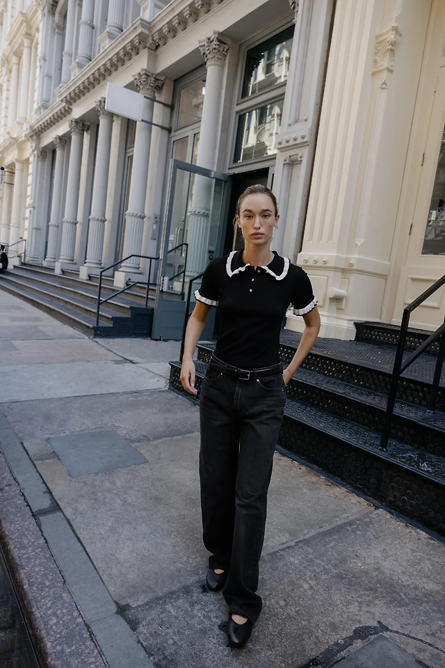 Cotton-Linen Johnny-Collar Sweater Polo Shirt