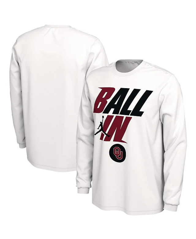 Men's Jordan White Oklahoma Sooners Ball In Bench Long Sleeve T-shirt