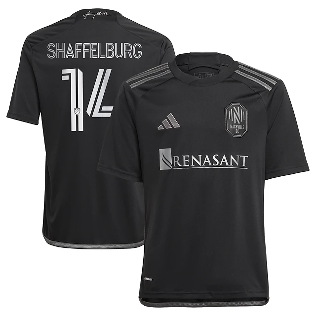 Youth adidas Jacob Shaffelburg Black Nashville SC 2024 Man In Black Kit Replica Player Jersey