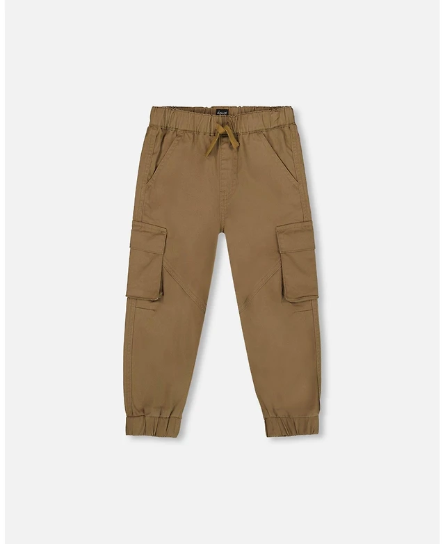 Deux par Boy Twill Jogger Pants with Patch Pockets Beige - Child