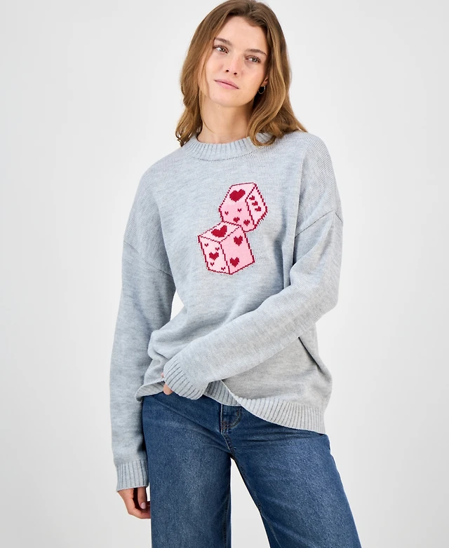 Just Polly Juniors' Heart Dice Crewneck Sweater