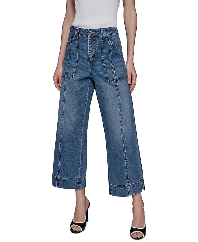 Karl Lagerfeld Paris Women's Wide-Leg Cropped Denim Jeans