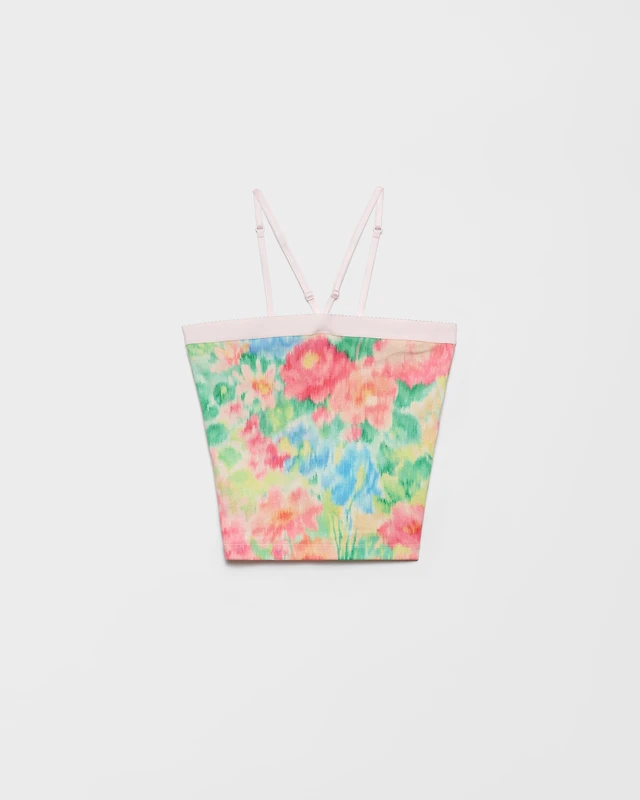 Ribbed knit cotton top with floral print
