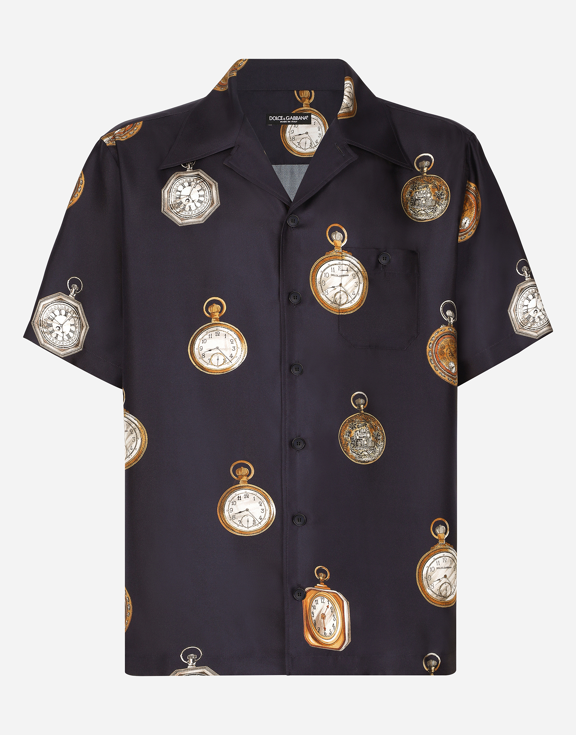 Silk twill Hawaiian shirt with watch print