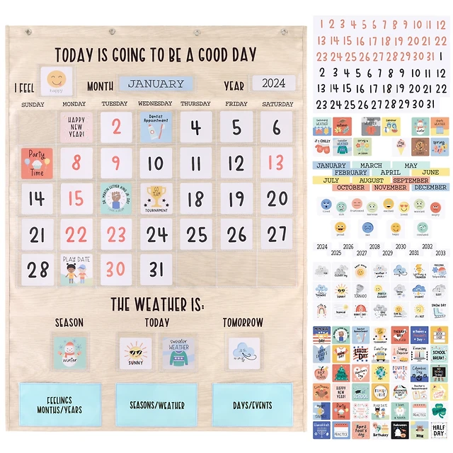 The Peanutshell Today Is A Good Day Educational Wall Calendar for Kids with Activities, Preschoolers Ages 3+, Jumbo Size 28"x38", Wood Grain Boho Clas