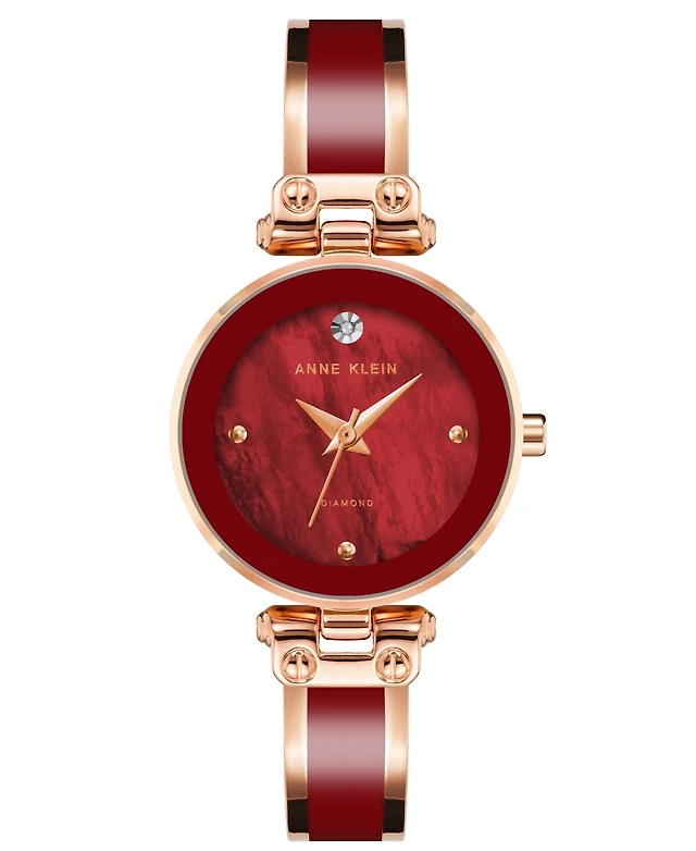 Anne Klein Women's Three Hand Quartz Rose Gold-tone Alloy and Burgundy Enamel Bangle Watch, 28mm