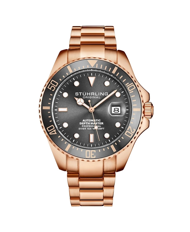 Stuhrling Men's Automatic Self Wind Pink Case, Silver Dial, Brown Leather Strap Watch