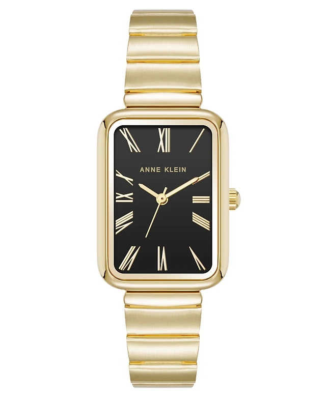 Anne Klein Women's Quartz Petite Rectangular Gold-Tone Stainless Steel Watch, 23mm