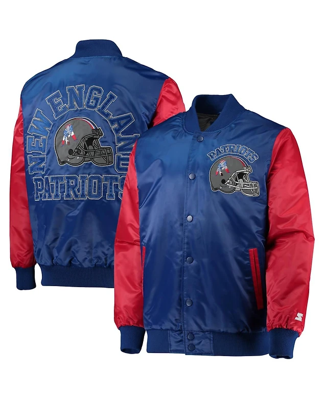 Men's Starter Royal, Red New England Patriots Locker Room Throwback Satin Varsity Full-Snap Jacket