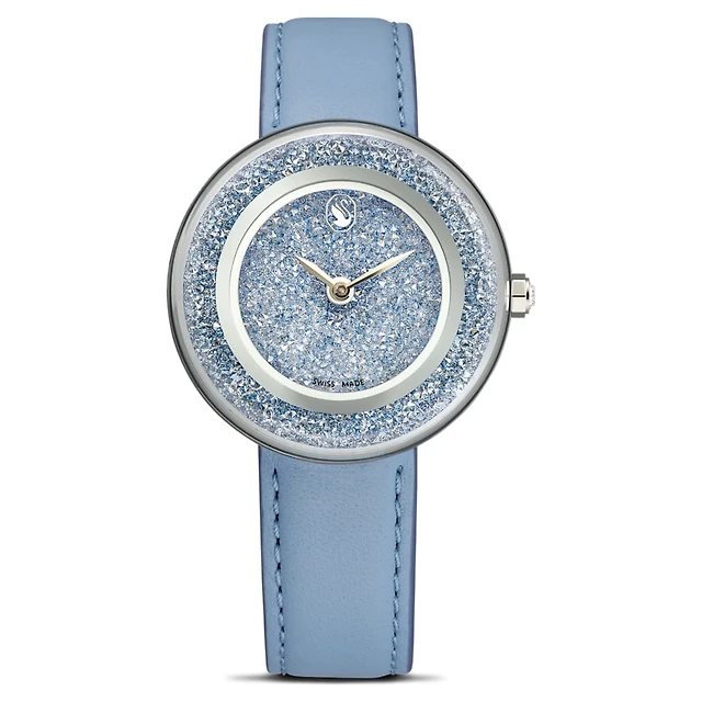 Crystalline lustre watch, Swiss Made, Leather strap, Blue, Stainless Steel by SWAROVSKI
