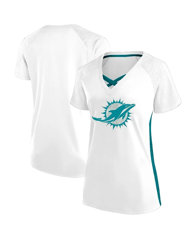 Fanatics Women's White Miami Dolphins Plus Glitter Lace-Up V-Neck T-Shirt