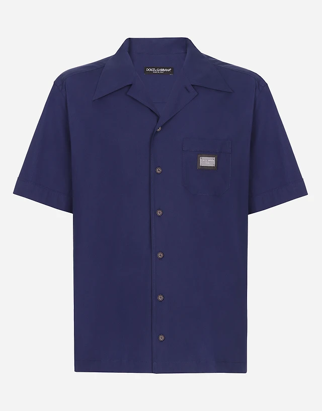 Slim fit cotton shirt with jacquard logo workmanship