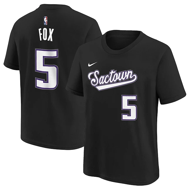 Youth Nike De'Aaron Fox Black Sacramento Kings 2021/22 City Edition Name & Number T-Shirt