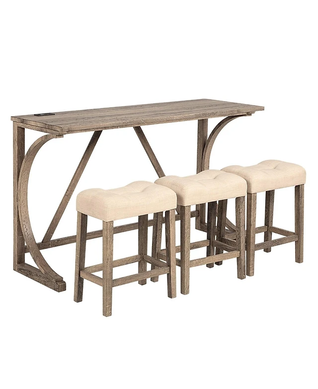 Casainc 4 Piece Bar Table Set with Power Outlet and 3 Padded Stools for Dining or Living Room