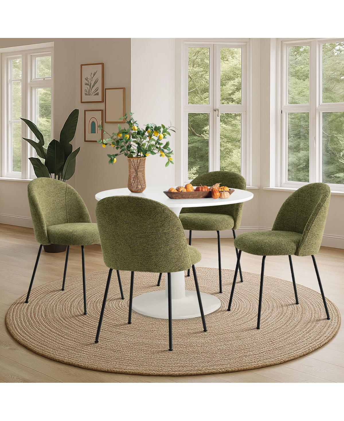 5-Piece 35" Round White Pedestal Dining Table Set with 4 Curved Back Boucle Upholstered Chairs and Black Metal Legs-Maison