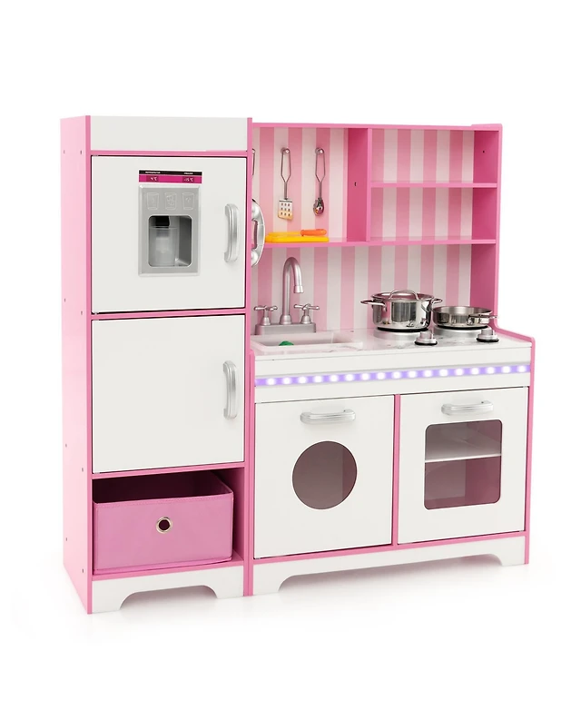 Kids Kitchen Playset with Adjustable Led Lights & Washing Machine Interactive Pretend Cooking Toy