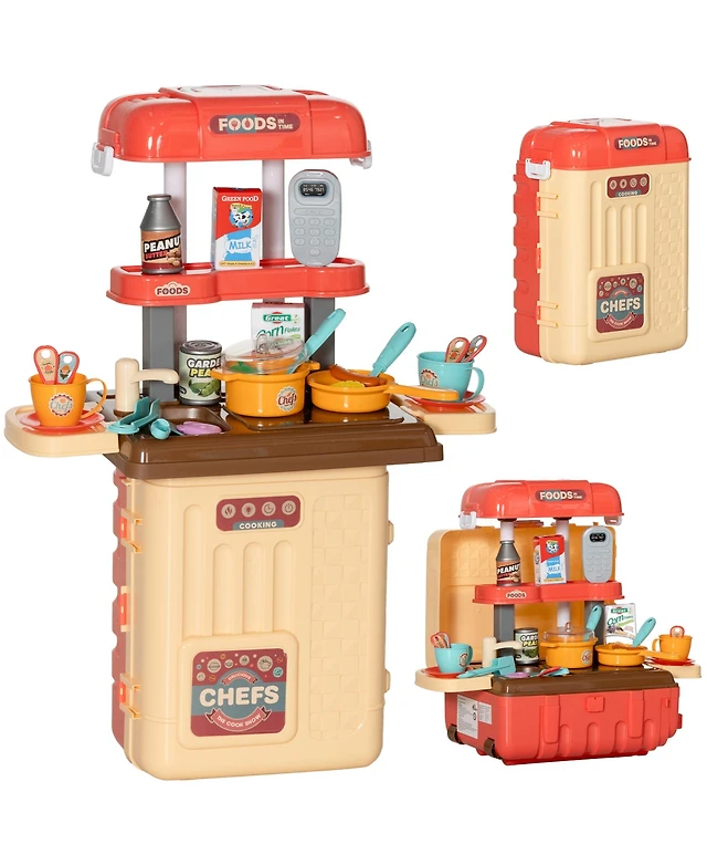 Qaba 3 in 1 Play Kitchen Set, Foldable Pretend Play Toys for 3-6 Years Old