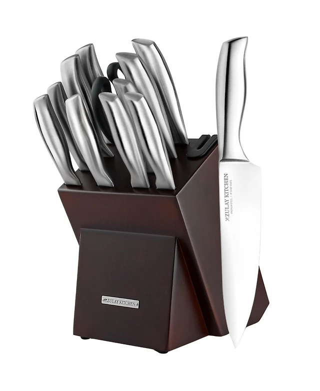 Zulay Kitchen 18 Piece Stainless Steel Knife Set with Block and Sharpener