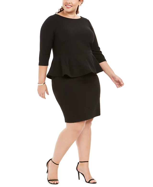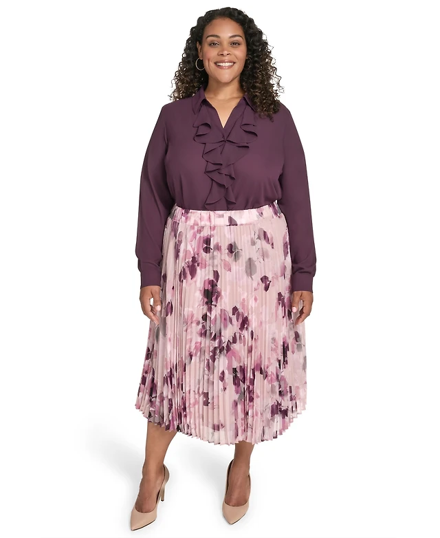 Calvin Klein Plus 3/4-Sleeve Chiffon Midi Dress