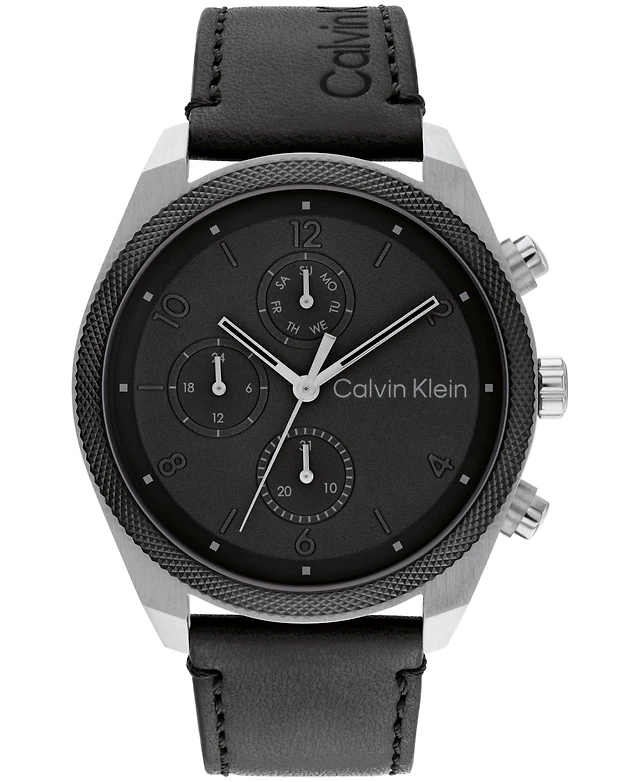 Calvin Klein Men's Multifunction Black Leather Strap Watch 44mm